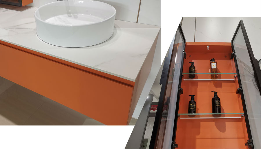 除去方圓融合的造型,色彩也是美加華方圓浴室柜的殺手锏。受國際奢侈品牌愛馬仕啟發(fā),經(jīng)專業(yè)調(diào)色師調(diào)配“愛馬仕橙”,色彩飽滿明媚,卻又不會(huì)過分艷麗夸張。