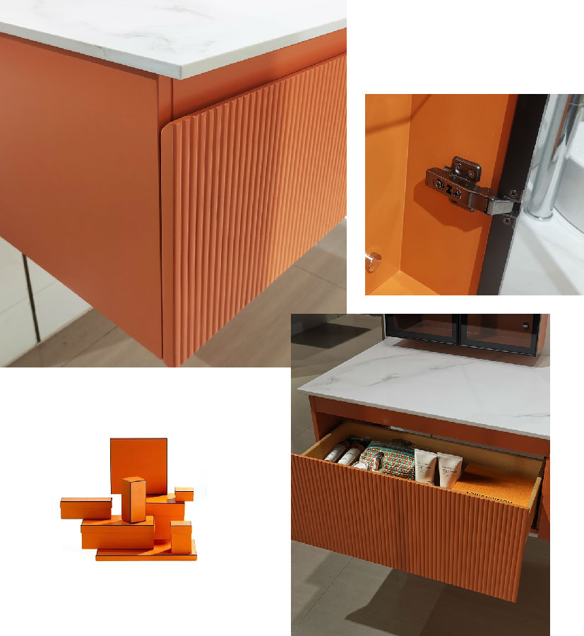 除去方圓融合的造型,色彩也是美加華方圓浴室柜的殺手锏。受國(guó)際奢侈品牌愛馬仕啟發(fā),經(jīng)專業(yè)調(diào)色師調(diào)配“愛馬仕橙”,色彩飽滿明媚,卻又不會(huì)過分艷麗夸張。